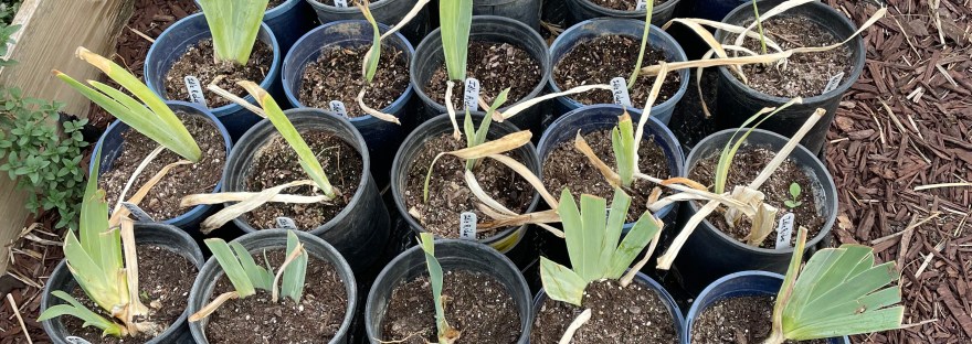 In preparation for our plant sale in April, irises have been planted in one gallon pots. The pots were donated by members, planting soil donated by Ace Hardware in Escalon and plants donated by Lorraine Nicholson.